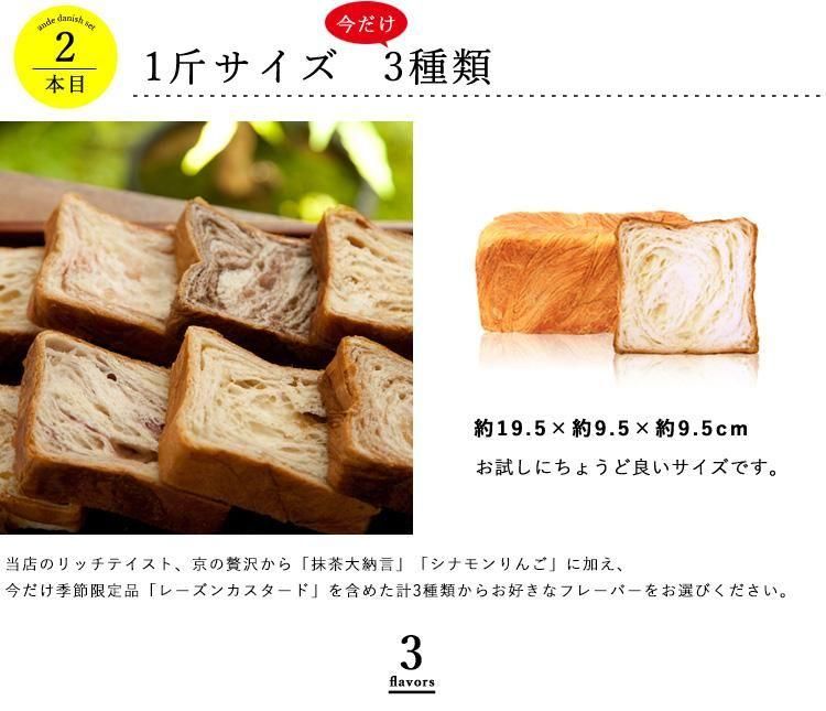 内容 | プレーンデニッシュ1.5斤サイズ×1本 2種類の中からお好きなデニッシュ1斤サイズ×1本 ※北海道へ発送は770円/東北への発送は320円/沖縄へ発送は1600円送料がかかります。 |