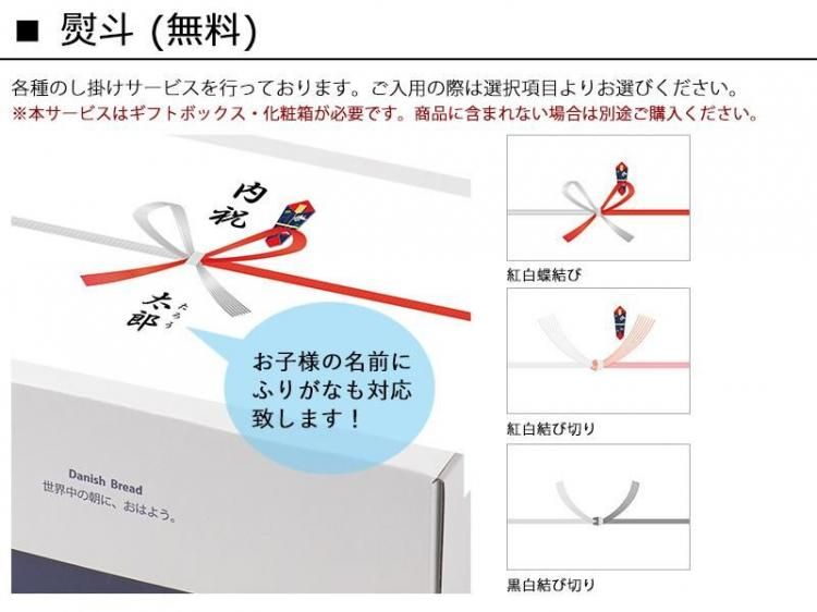 | 内容 | 【京の贅沢】抹茶大納言デニッシュ1本 【京の贅沢】栗デニッシュ1本 シナモンりんごデニッシュ1本 ※熨斗・ギフトカードをご希望の場合はご注文の際に「ギフトサービスを利用する」よりご選択ください。 ※包装紙などでのお包みは非対応。 ※紙袋は有料となります。ご入用の際は別途ご注文下さい。 ※北海道へ発送は770円/東北への発送は320円/沖縄へ発送は1600円送料がかかります。 |